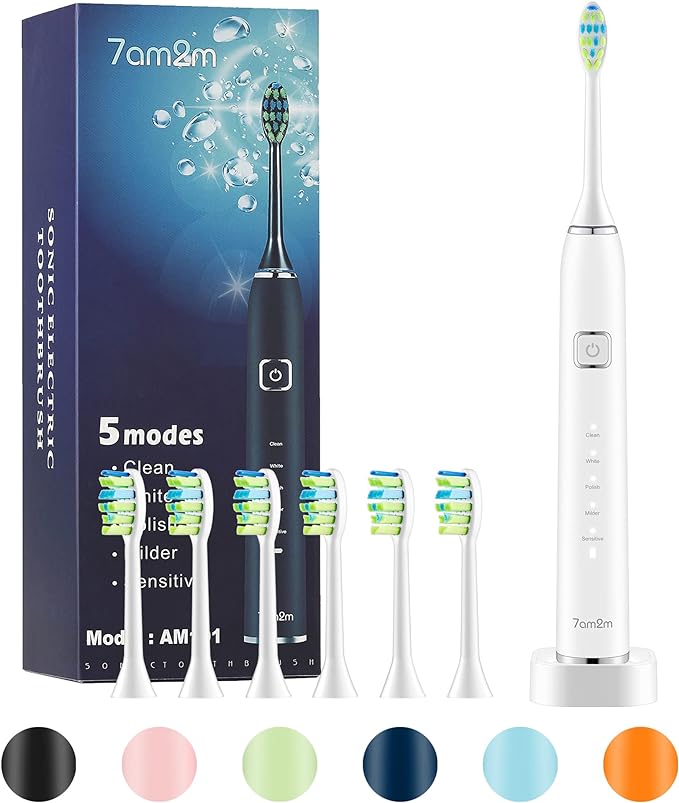 7AM2M Sonic Electric Toothbrush with 6 Brush Heads for Kids and Children, One Charge for 90 Days, Wireless Fast Charge, 5 Modes with 2 Minutes Build in Smart Timer, Electric…