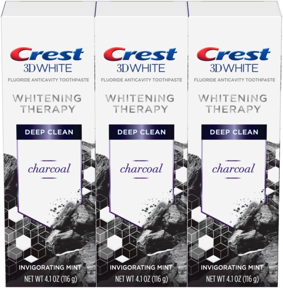 Crest Charcoal 3D White Toothpaste, Whitening Therapy Deep Clean with Fluoride, Invigorating Mint, 4.1 Oz (Pack of 3)