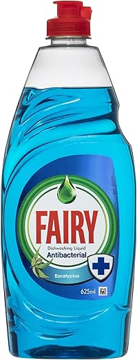 Fairy Antibacterial Washing Up Liquid Eucalyptus For Sparkling Clean Dishes and Protects You Sponge For Up To 24 Hours Against Bacterial Growth 625 ml