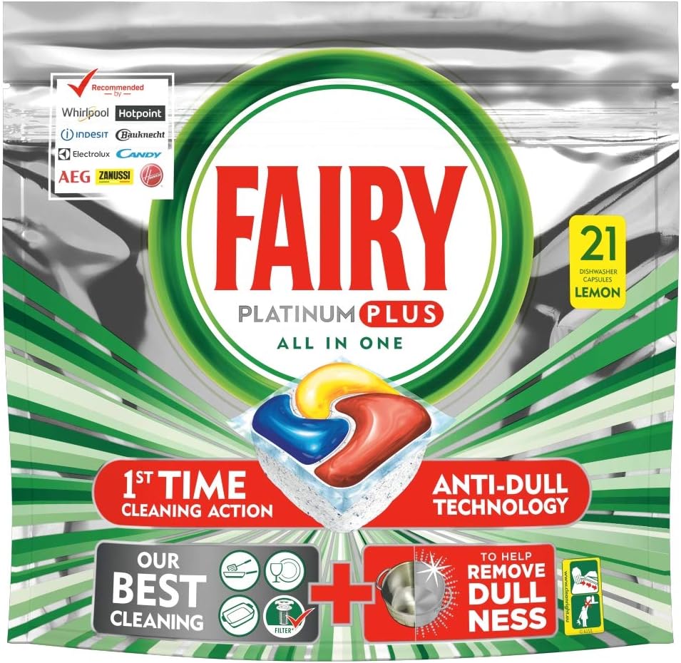 Fairy Platinum Plus Dishwasher 21 Tablets, Lemon
