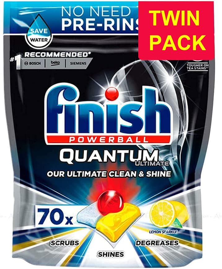 Finish Powerball Quantum Ultimate Lemon Sparkle Dishwasher Pack of 2 x 70 Tablets