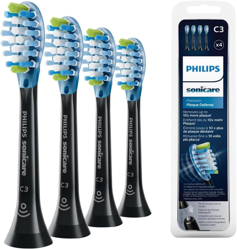 Philips Sonicare Original C3 Premium Plaque Defence Standard Sonic Toothbrush Heads – 4 Pack in Black (Model HX9044/33)
