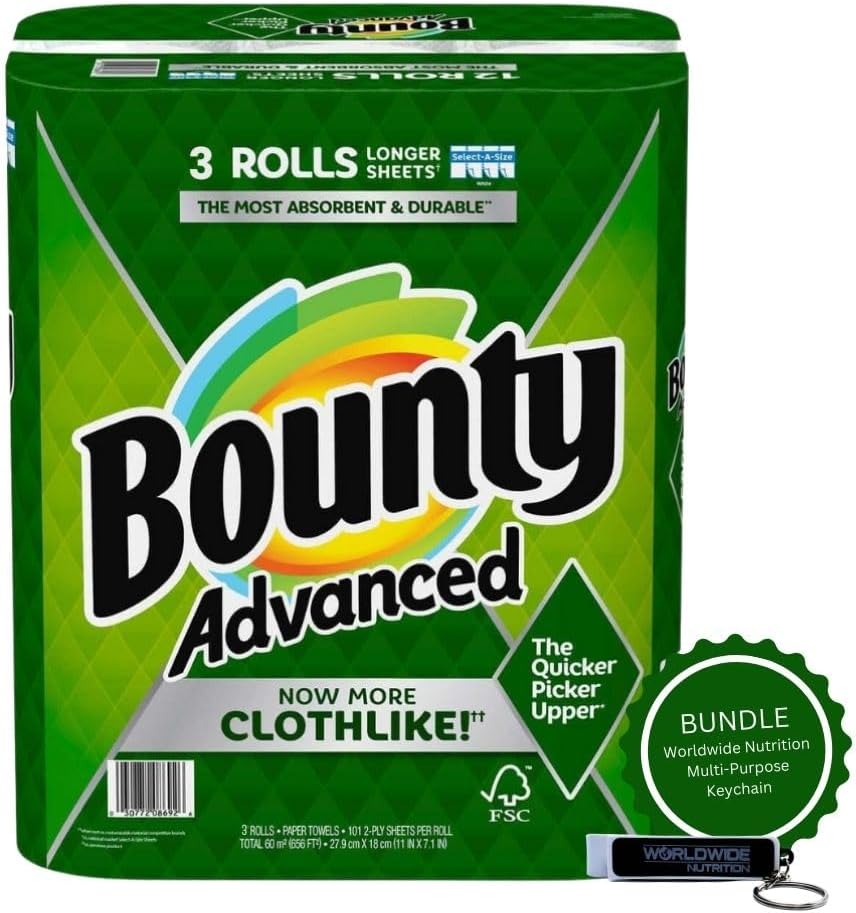 Worldwide Nutrition Bundle Compatible with Bounty Advanced Paper Towel 3 Rolls – Select-A-Size – Superior Absorbency, Strength & Durability – 2-Ply of 101 Sheets Paper Towel…